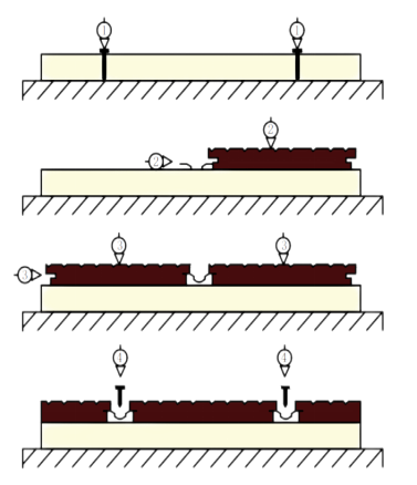 3) 放入卡扣 : 將卡扣推入地板兩側的四槽中;