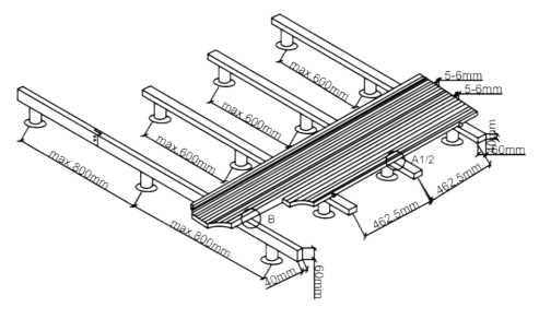 1)固定龍骨 : 絲釘把龍骨固定在地面;