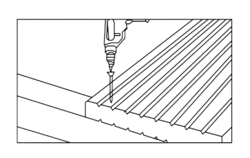 2) 固定地板1 : 將第一片地板放在龍骨上;
